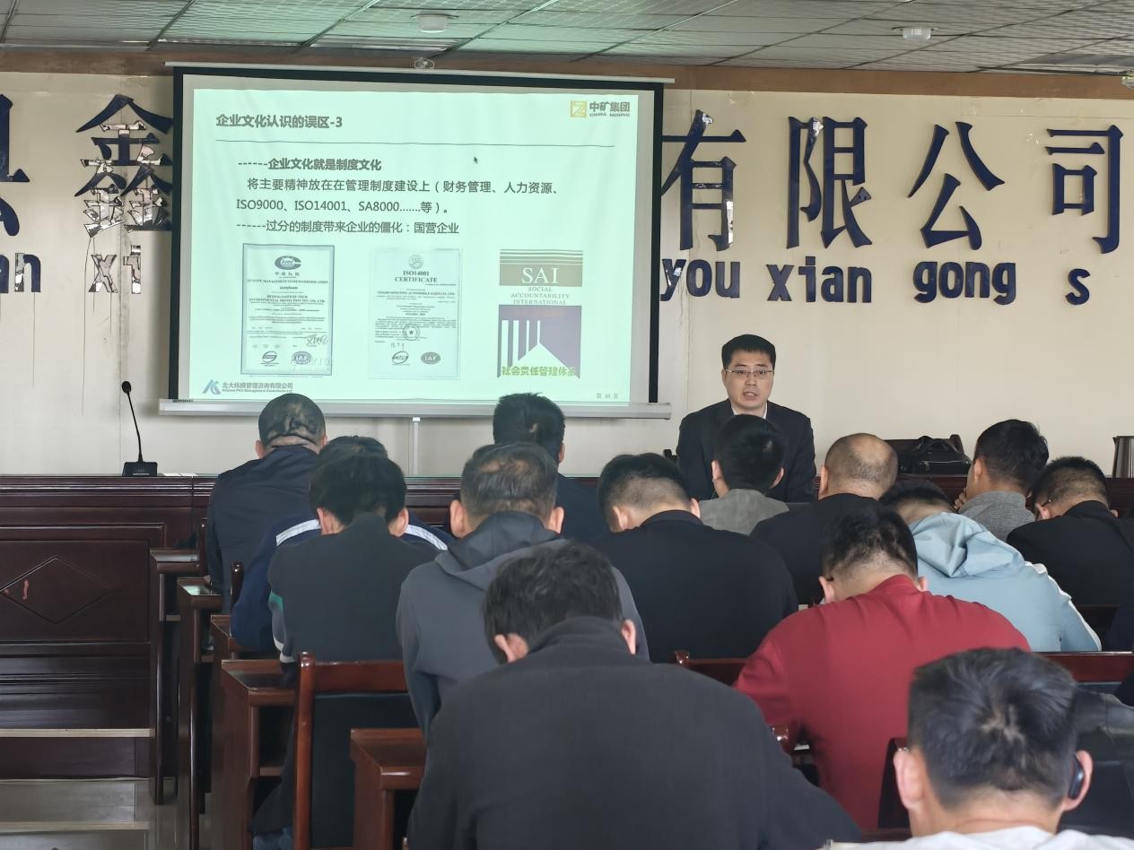 培训伊始,中矿集团主讲人孙立彬老师以亲切生动的语言,向大家介绍了此次培训的目的和意义。鑫轮煤矿作为集团公司的下属单位,应深刻领会企业文化内涵,将其融入到日常工作的每一个环节。