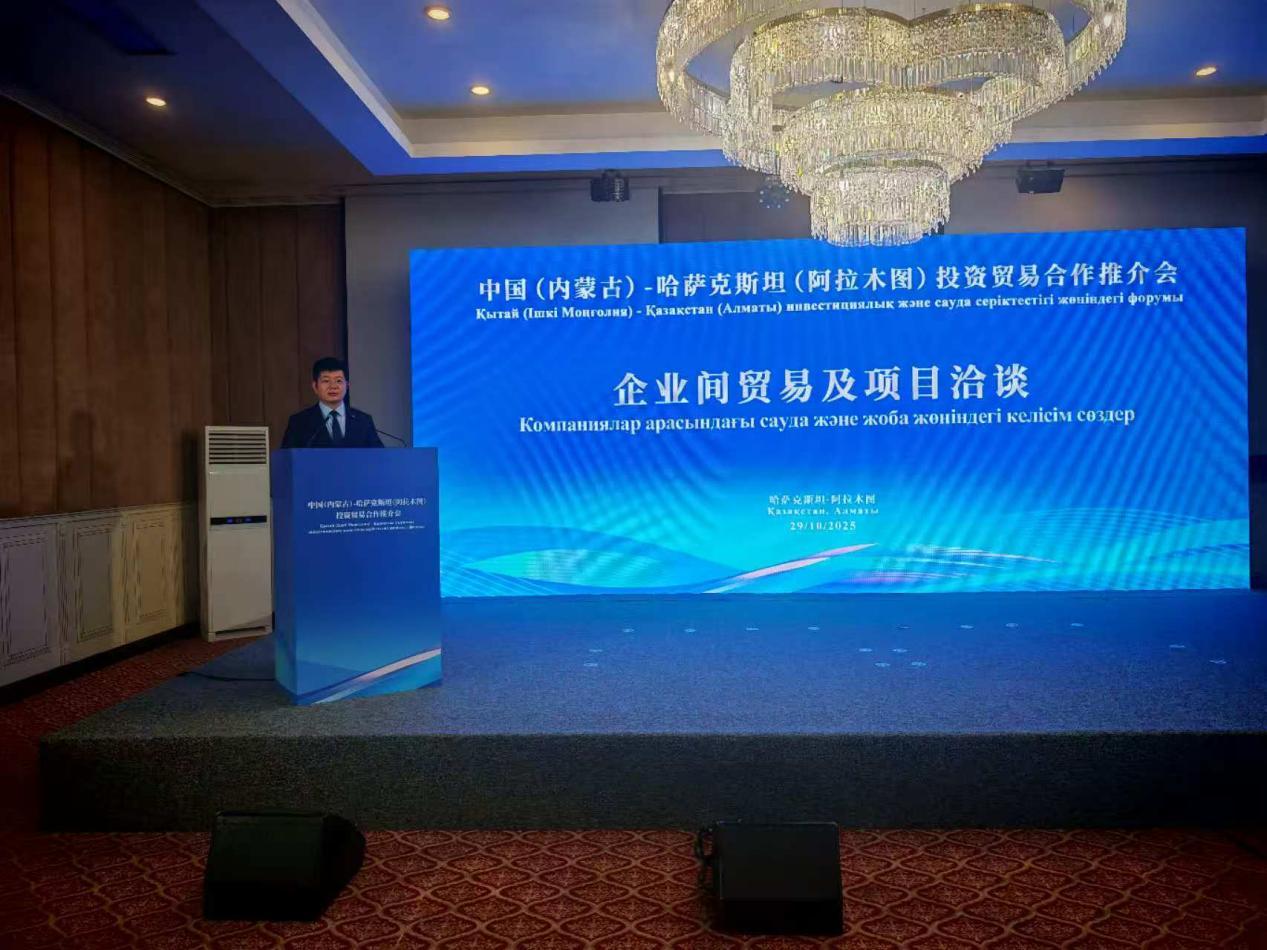 2025年10月29日,由内蒙古自治区商务厅主办的“中国内蒙古-哈萨克斯坦投资贸易合作推介会”在哈萨克斯坦阿拉木图市举办。中科龙华(内蒙古)桑梓环保科技有限公司(以下简称“中科龙华”)旗下子公司——内蒙古桑梓技术开发有限公司(以下简称“桑梓技术公司”)参会;中科龙华总经理高波、副总经理杜晓飞及技术员周智3人组成参会团队,在现场向中哈双方参会人员介绍了桑梓技术公司“一站式消防系统解决方案”相关情况,积极拓展哈萨克斯坦市场。